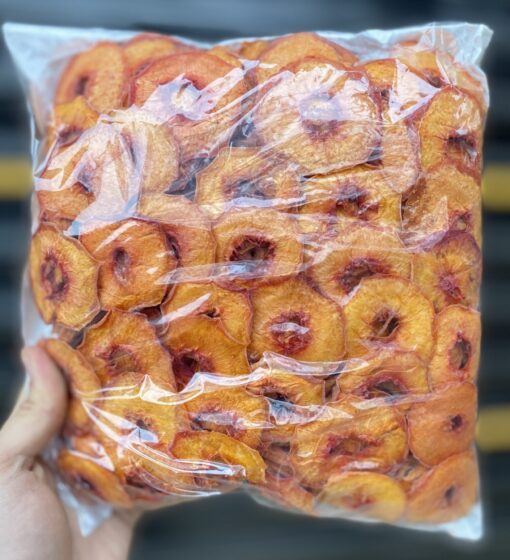 اسلایس هلو زعفرانی  ارگانیک بدون شکر ارگانیک معمولی نیست .حاصل برش نازک و ظریف هلو تازه و خشک کردن به روش گرما در دستگاه های مخصوص بهداشتی است که همراه با زعفران خوش رنگ شده است در درجه حرارتی خاص در مجموعه بازرگانی براتی تولید شده است.که رنگ محصول و تازگی و طعم اسلایس هلو زعفرانی حفظ و طعم لذت بخشی داشته باشد و توجه بفرمایید محصولات اسلایس میوه خشک و همچنین اسلایس هلو زعفرانی حاصل خشک شدن 10 کیلو هلو زعفرانی تازه 1 کیلو اسلایس خشک است و بنابر این خواص و ویتامین های مفید این محصول حفظ شده و فقط آب محصول کشیده شده است و نکته جالب این محصول این است که 1 کیلو این محصول برابر با 10 کیلو میوه تازه است.